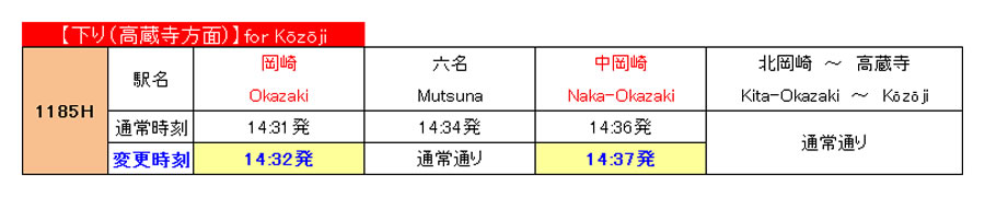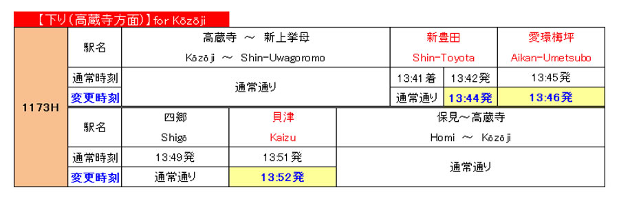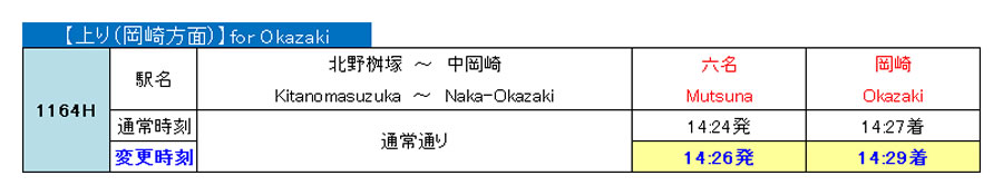 3月6日(金)一部列車の運転時刻変更について