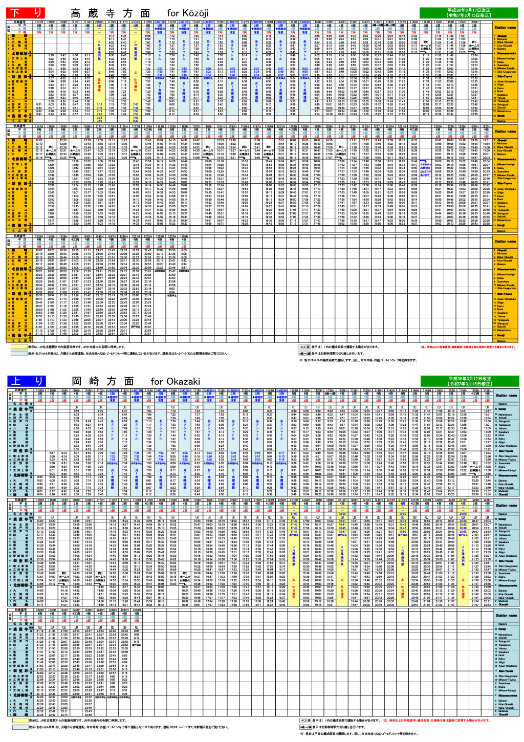 時刻表(3月13日までのダイヤ)